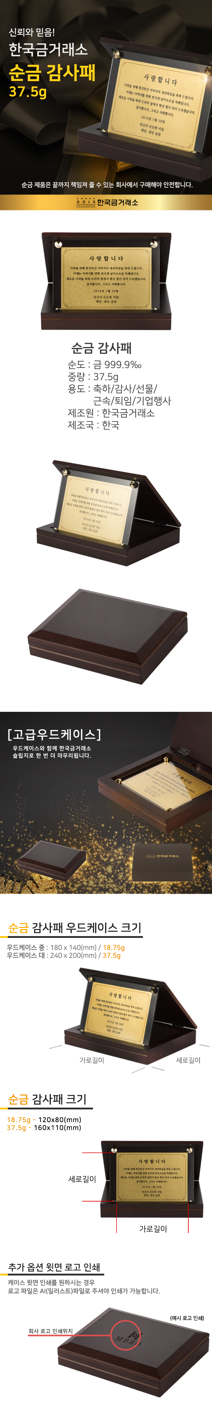 순금 감사패 37.5g